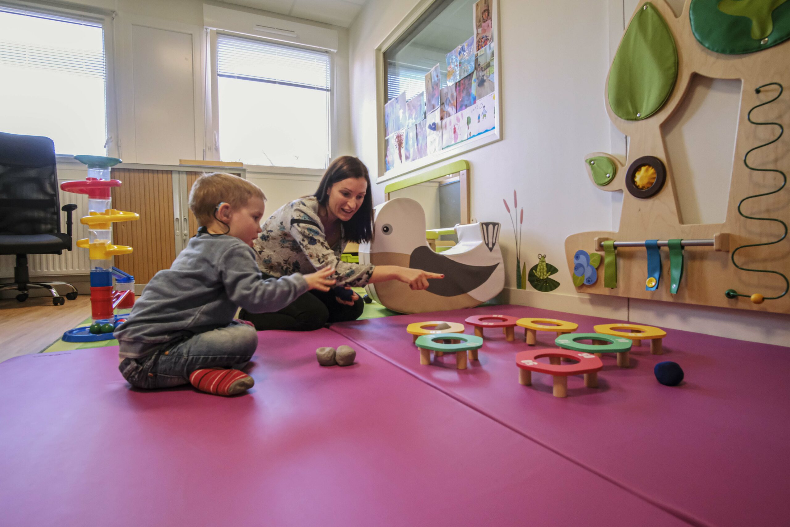 Des consultations médicales pédiatriques et des examens ORL réguliers, des séances d’orthophonie, d’ergothérapie, d’apprentissage et perfectionnement du langage oral et de la parole, des ateliers de communication, un suivi par la psychologue, des activités psychomotrices, du soutien à la scolarisation sont proposés et adaptés en fonction de la progression de votre enfant.